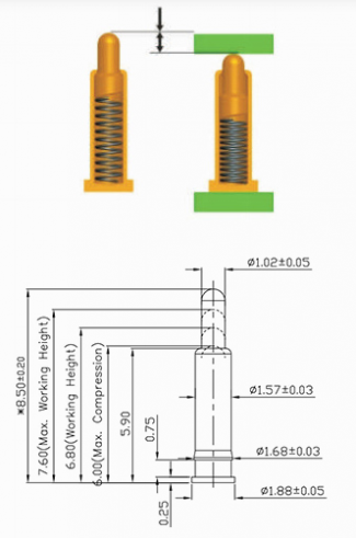 Základná pracovná výška Pogo Pin(pružinového konektora):