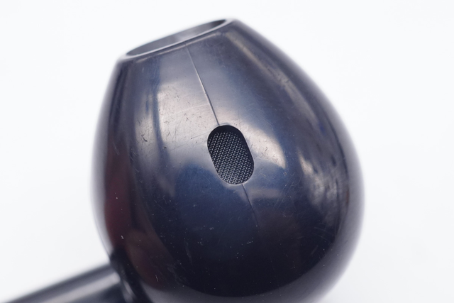 Nižšie je otvor pre LED indikátor, ktorý informuje o stave párovania slúchadiel v rôznych farbách červenej a modrej. Je to tiež otvor pre mikrofón na snímanie hlasu.